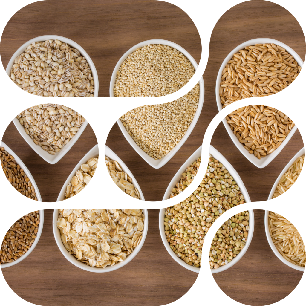 Bevorzugt von Quinoa, Hafer und braunem Reis, gegenüber raffinierten Getreideprodukten.
